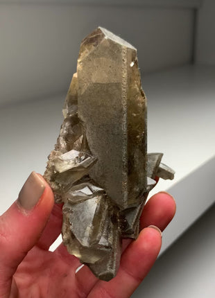 Lustrous and transparent yellow-gray barite crystals with opaque gray surfaces and fine terminations Collected in 2012 Origin: Linwood Mine, Buffalo, Scott... Read more