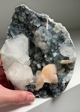Druzy Black Chalcedony Geode with Apophyllite and Stilbite Origin: Nashik, India Size: 162 x 130 x 88 mm Weight: 1349... Read more