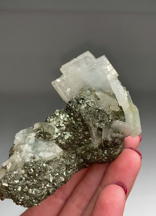 Uncommon Combination of Barite Crystals with Pyrite Origin: Bou Nahas Mine, Oumjrane area, Morocco Size: 82 x 57 x 40 mm... Read more
