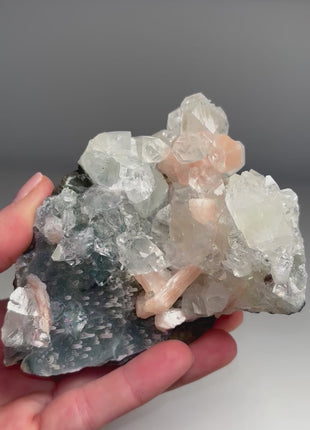 Blue Chalcedony with Apophyllite and Stilbite Origin: Nashik, India Size: 116 x 84 x 60 mm Weight: 326 gr Read more