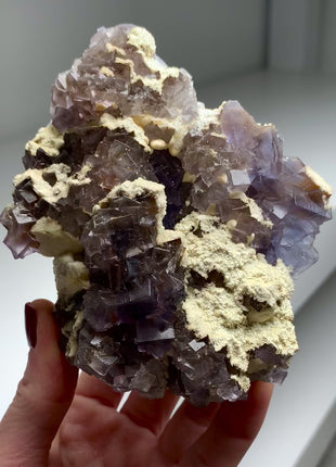 Blue Purplish Fluorite with Calcite From: Loralai, Balochistan, Pakistan Size: 110 x 85 x 55 mm Weight: 568 gr Read more