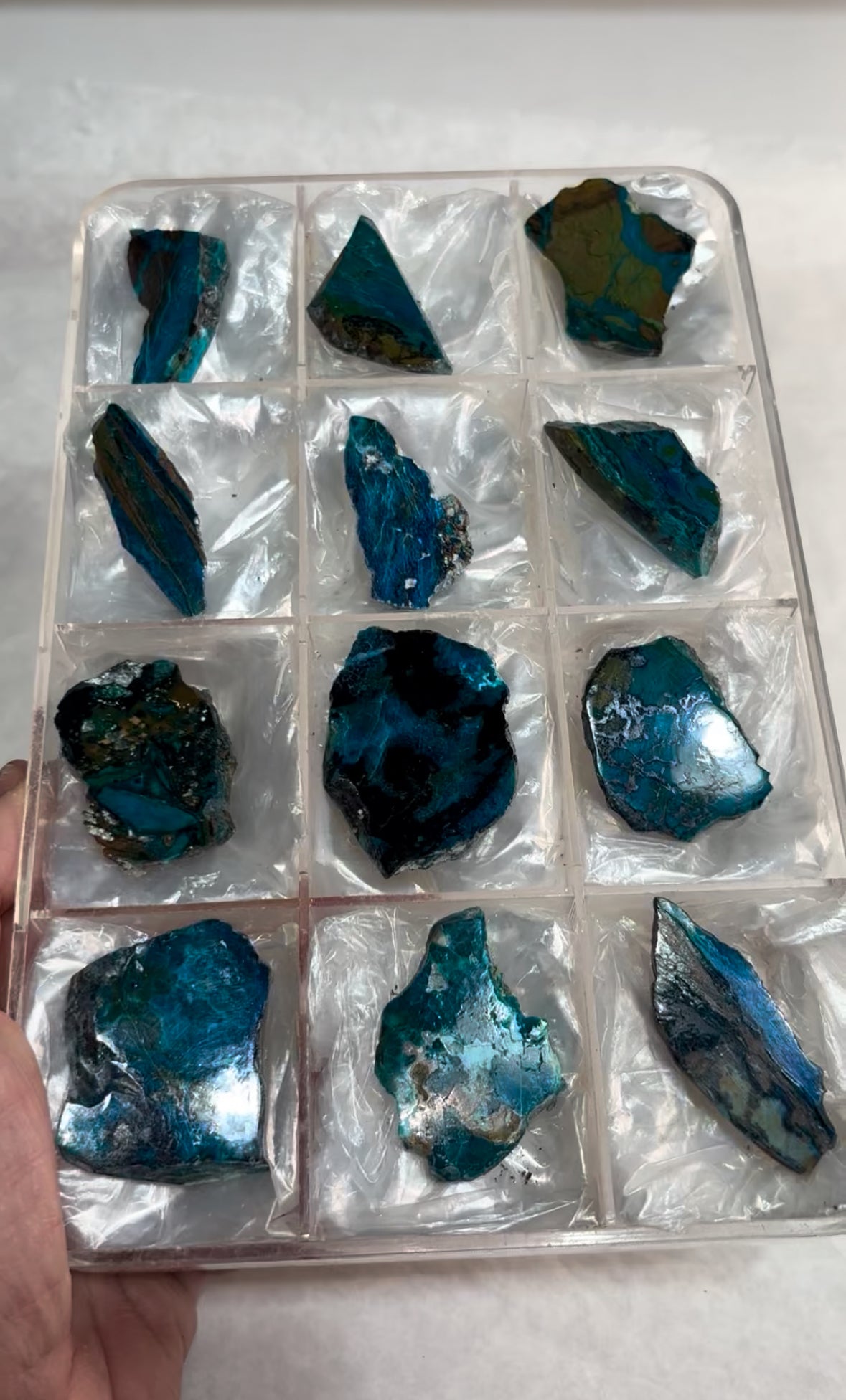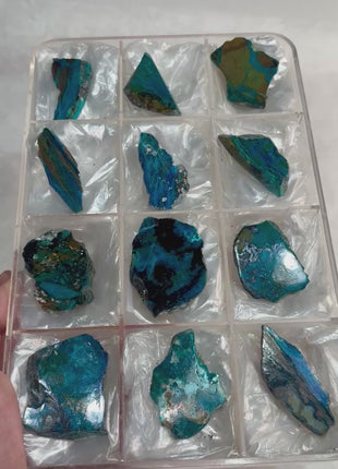 Gorgeous Blue Gem Silica From: Peru 12 Piece Lot Size range: 54 - 40 mm Total Weight: 115 gr Read more