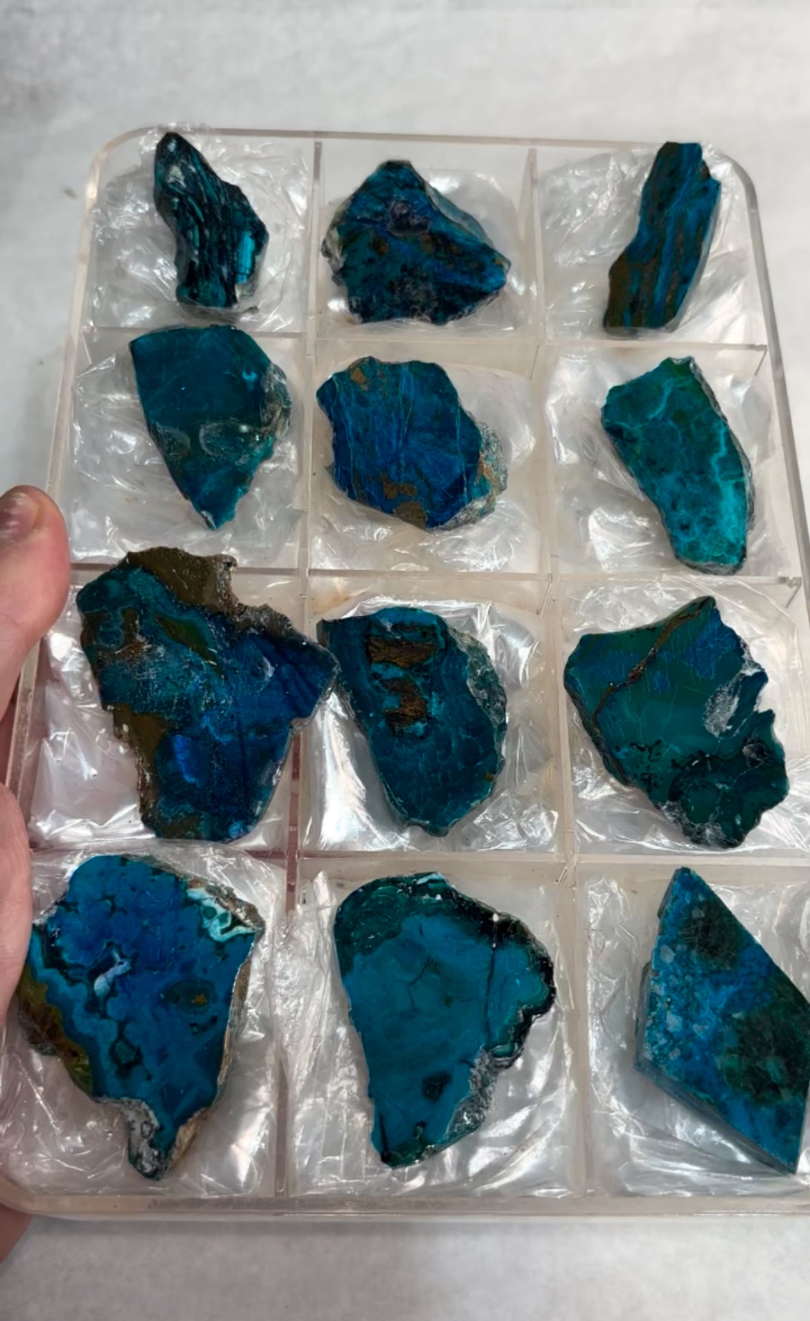 Gorgeous Blue Gem Silica From: Peru 12 Piece Lot Size range: 61 - 47 mm Total Weight: 150 gr Read more