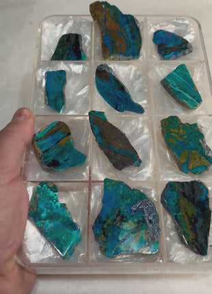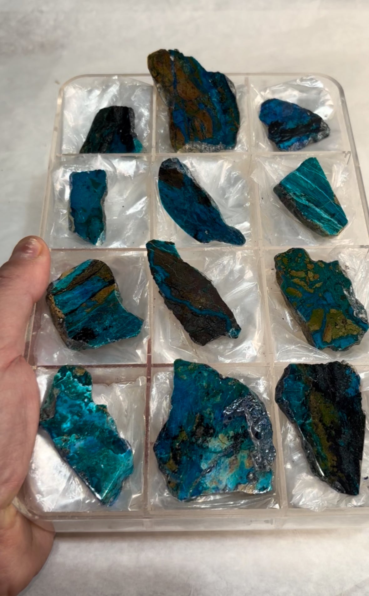 Gorgeous Blue Gem Silica From: Peru 12 Piece Lot Size range: 73 - 43 mm Total Weight: 158 gr Read more