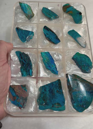 Gorgeous Blue Gem Silica From: Peru 12 Piece Lot Size range: 66 - 40 mm Total Weight: 128 gr Read more