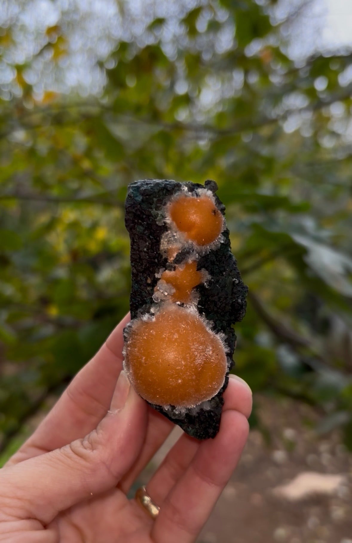 Stellar Bright Orange Thomsonite with Mesolite Very aesthetic specimen From: Deshgaon, Madhya Pradesh, India Size: 75 x 40 x 40 mm ... Read more