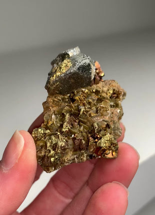 Bright and attractive Chalcopyrite with Siderite. Great luster. Origin: Kaiwu Mine, Hezhang Co., Bijie, Guizhou, China Size : 50 x 35... Read more