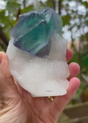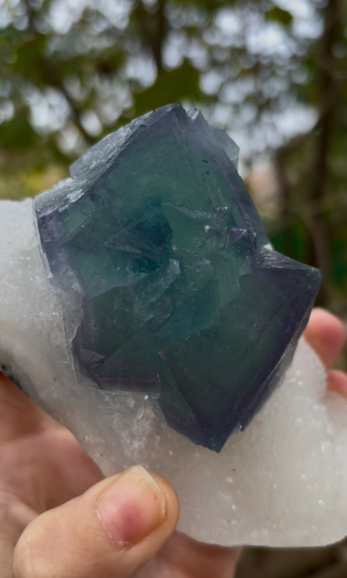 Octahedral Green Fluorite with Blue Purple Edges and Corners with Quartz. From: Yong Chun, Fujian, China Size: 130 x 75 x... Read more