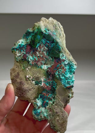 Absolutely stunning rich blue chrysocolla with native copper. The copper creates shiny streaks throughout the chrysocolla. From a recent discovery Origin:... Read more