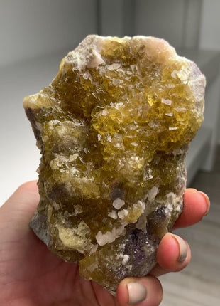 Cubic Yellow Fluorite with White Dolomite From: Moscona mine, Asturias, Spain Size: 110 x 75 x 70 mm Weight: 736 gr Read more