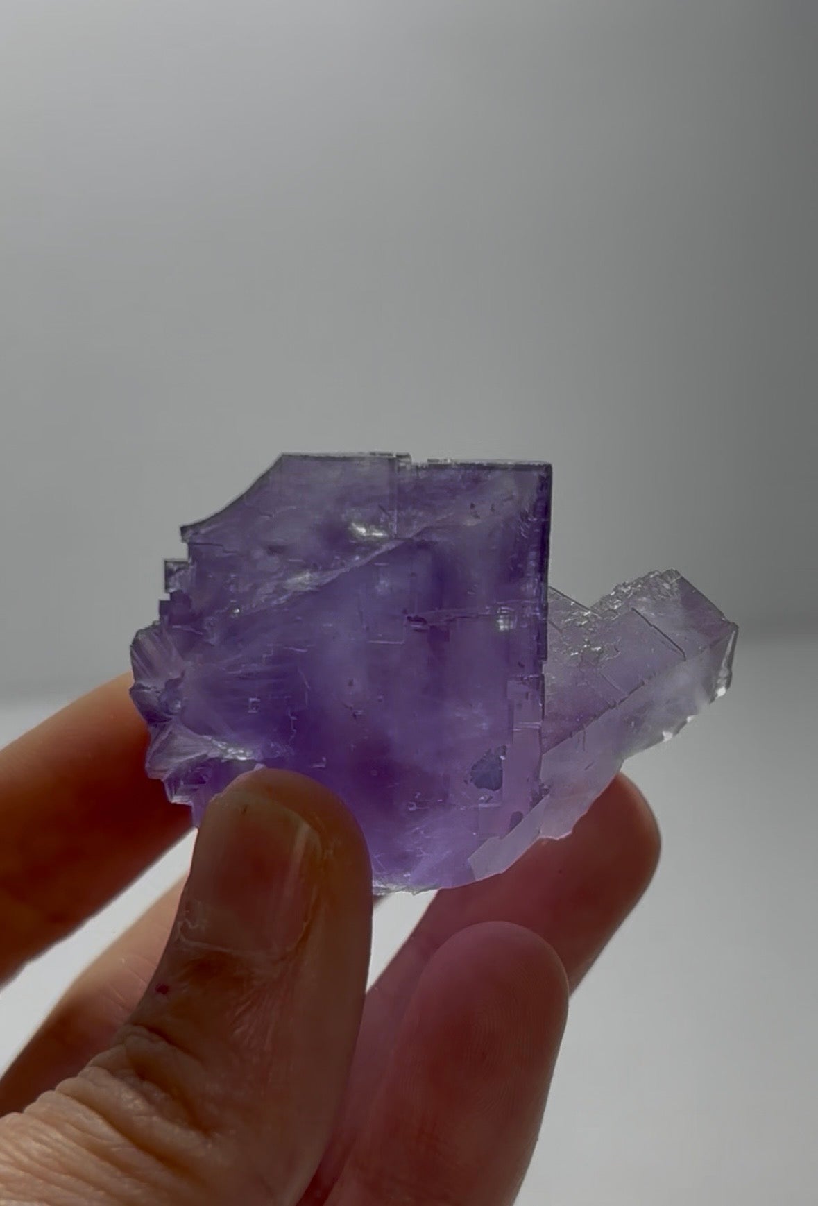 This lustrous cubic specimen has excellent zoning towards the exterior and a deep purple core. Sharp edges and unique surface... Read more