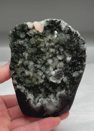 Druzy Green Chalcedony Geode with Lustrous Crystals Origin: Nashik, Maharashtra, India Size: 102 x 84 x 52 mm Weight: 472 grams Read more