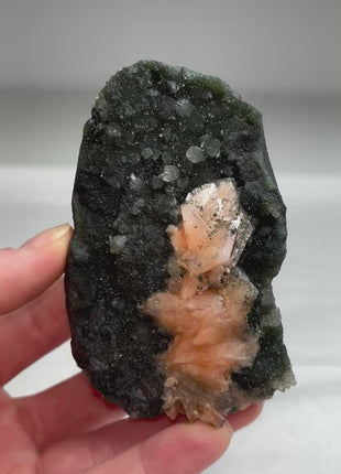 Druzy Black Chalcedony Geode with Pink Stilbite