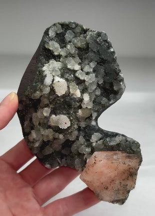 Druzy Black Chalcedony Geode with Pink Stilbite