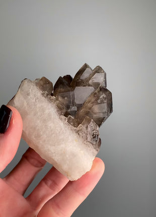 Elestial Smoky Quartz on White Quartz - From Namibia