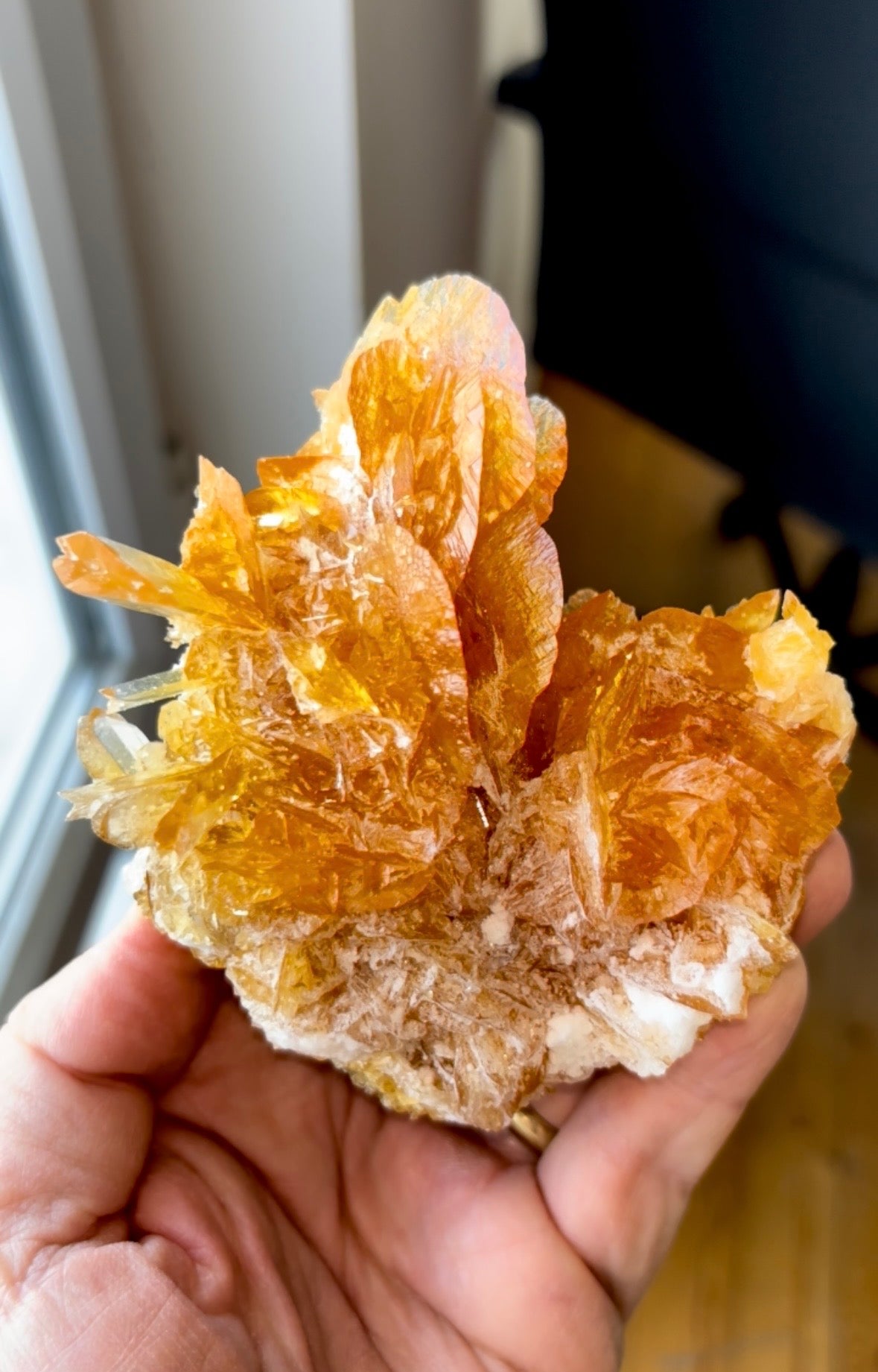 Exquisite golden honey color gemmy Selenite with swallow tail terminations. This is the classic representative of the famous finds of the early 2000s from Peru.