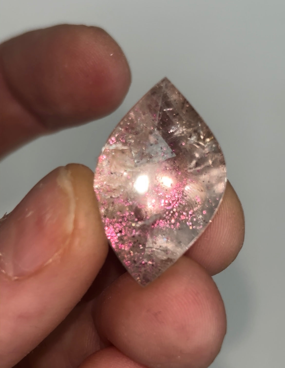 Firey Pink Covellite in Quartz Incredibly rare gem  Comes from a small find in Brazil Size: 27 x 17 x 9 mm Weight: 16.4... Read more