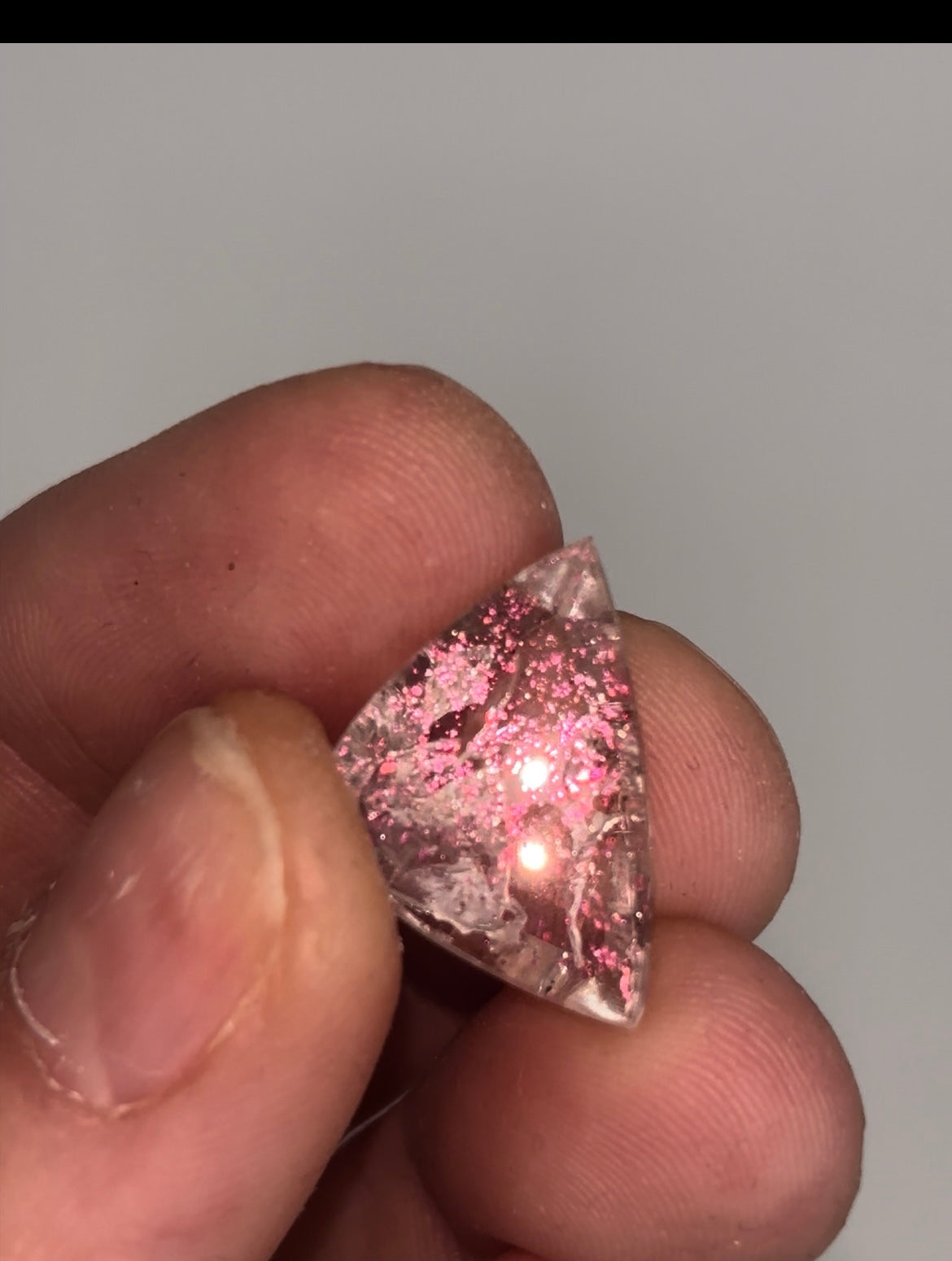 Firey Pink Covellite in Quartz Incredibly rare gem  Comes from a small find in Brazil Size: 19 x 13 x 8 mm Weight: 8.2 Carats Read more