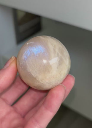 Very Flashy Rainbow Moonstone Sphere Origin: Tanzania Diameter : 50 mm Weight: 153 grams Read more