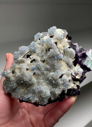 Amazing Aquamarine Blue Celestine with Purple and Green Fluorite from the famous locality Origin: Okorusu, Namibia Size: 120 x 93 x... Read more