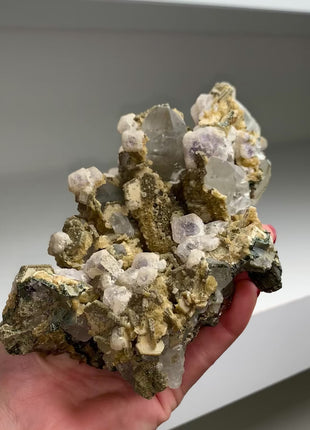 Icy Purple Fluorite with Quartz and Pyrite From: Panasqueira mine, Portugal Size: 164 mm x 108 mm x 103... Read more