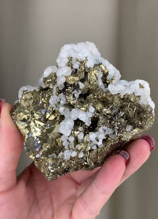 Lustrous Pyrite with Snowy Calcite - From Trepca Mine, Kosovo