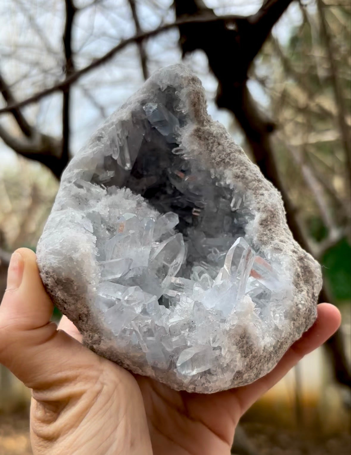 Gemmy Light Blue Celestite Geode From: Sankoany, Ketsepy Mahajanga, Madagascar Size: 128 x 109 x 82 mm  Weight: 940 Grams Read more