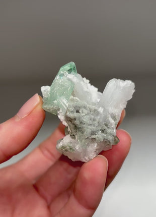 Very Aesthetic and Gemmy Green Apophyllite with Stilbite and Druzy Chalcedony Origin: Nashik, India Size: 53 x 48 x 32... Read more