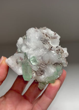 Very Aesthetic and Gemmy Green Apophyllite with Stilbite and Druzy Chalcedony Origin: Nashik, India Size: 82 x 80 x 56... Read more