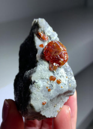Very Attractive Gemmy Bright Orange Sphalerite with Druzy White Quartz From: Shuikoushan Mine, Shuikoushan ore field, Hunan, China Size: Â 73... Read more