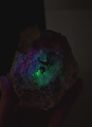 Fresh new discovery of Amethyst Geode with amazing glow under short UV light. Neon green and red colors similar to watermelon.