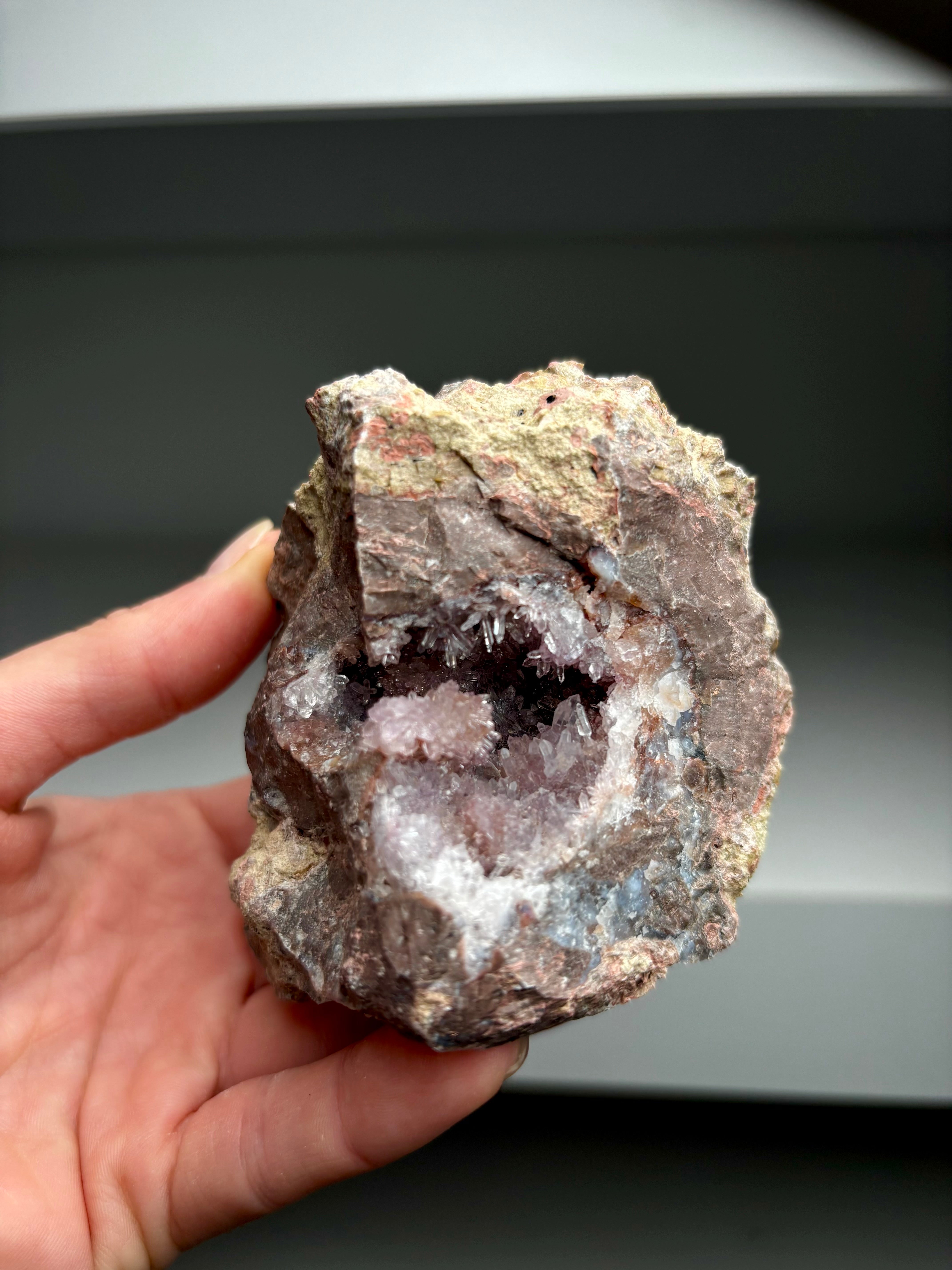 Fresh new discovery of Amethyst Geode with amazing glow under short UV light. Neon green and red colors similar to watermelon.