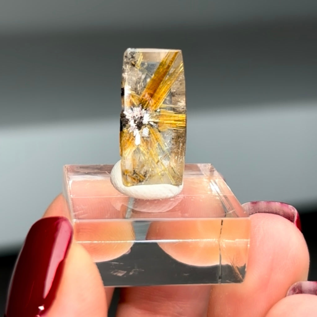 Very High Grade Star Rutile Quartz with Hematite. Excellent clarity From: Novo Horizonte, Brazil Size : 22 x 11 x 6 mm ... Read more