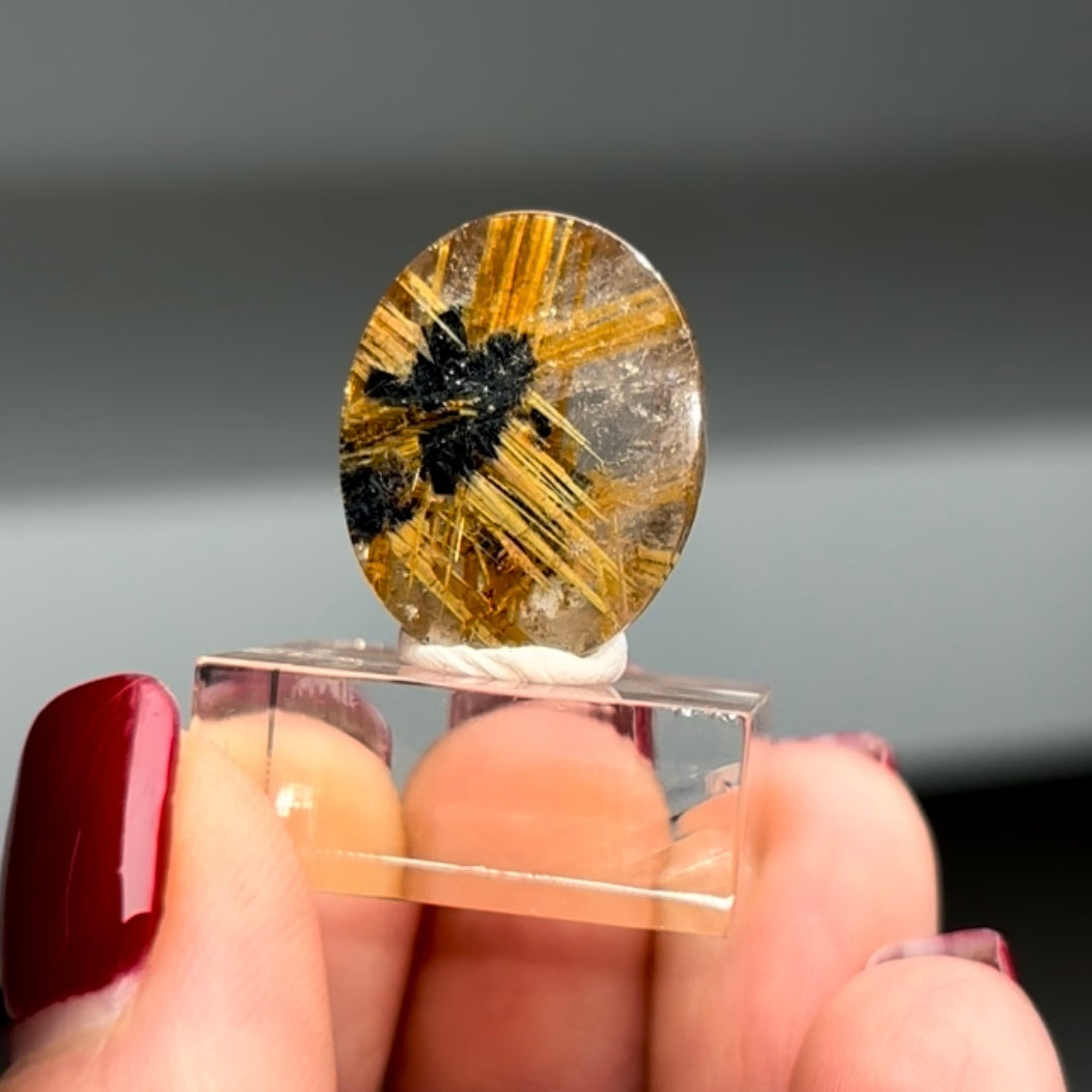 Very High Grade Star Rutile Quartz with Hematite. Excellent clarity From: Novo Horizonte, Brazil Size : 23 x 19 x 7 mm ... Read more