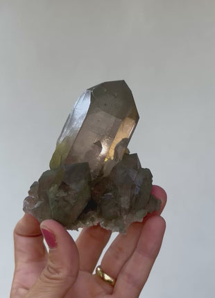Smoky Green Chlorite Quartz Mined at a very high altitude From: Argentière Glacier, Chamonix, Haute-Savoie, Auvergne-Rhône-Alpes, France Size: 103 x 78 x... Read more