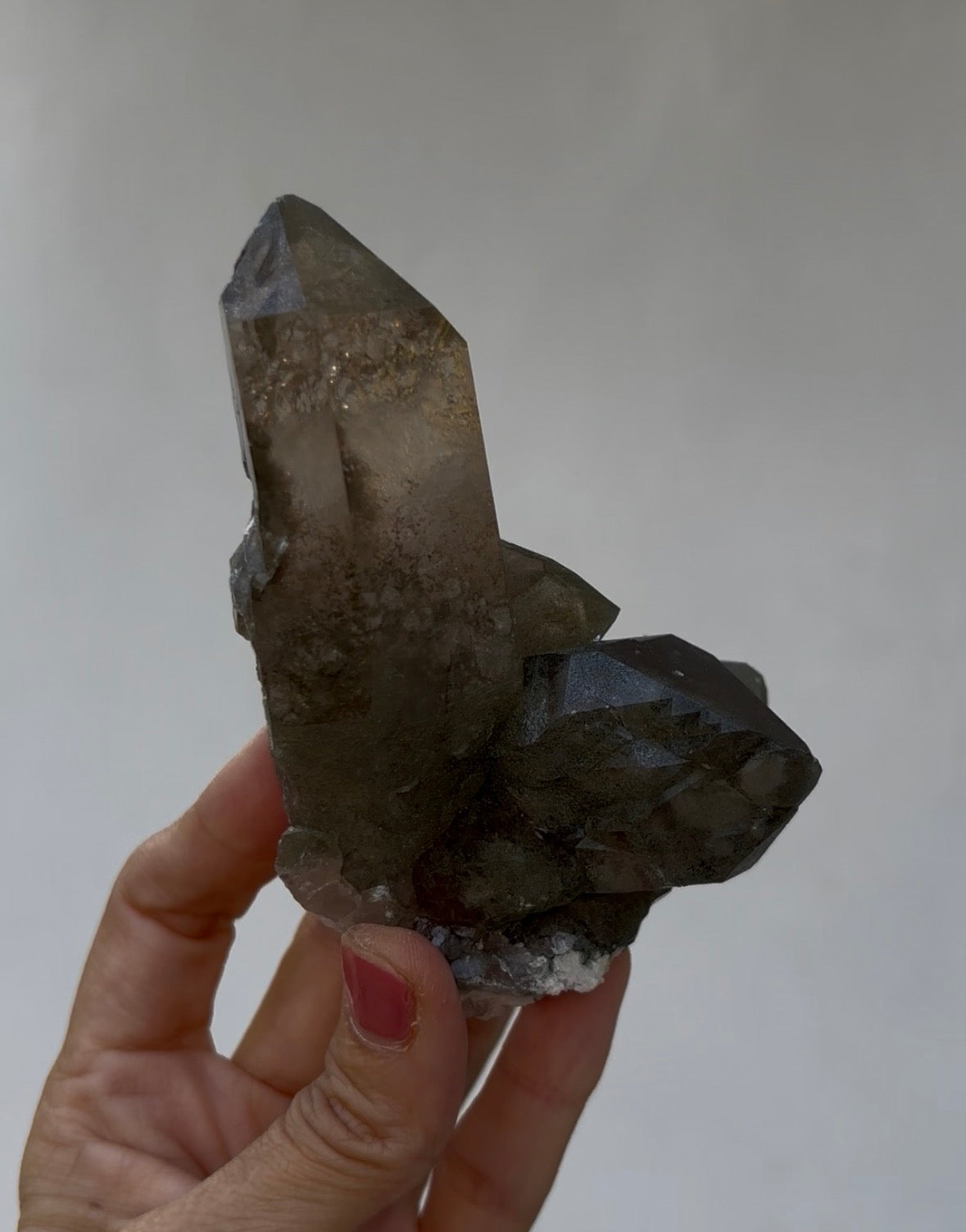 Smoky Green Chlorite Quartz Mined at a very high altitude From: Argentière Glacier, Chamonix, Haute-Savoie, Auvergne-Rhône-Alpes, France Size: 103 x 80... Read more