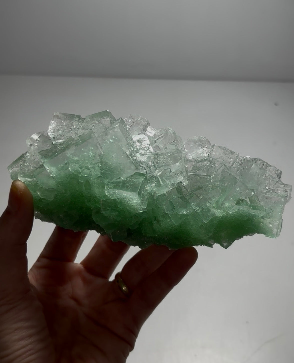 Very high grade green Halite specimen with gemmy cubic crystals. Green color caused by Atacamite inclusions. From: Lubin mine, Lower... Read more