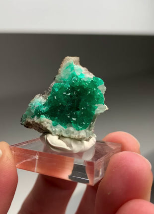 Emerald Green Dioptase Specimen with Lustrous Crystals From Reneville, Congo Size: 30 x 26 x 25 mm Weight: 55,3 carats Read more