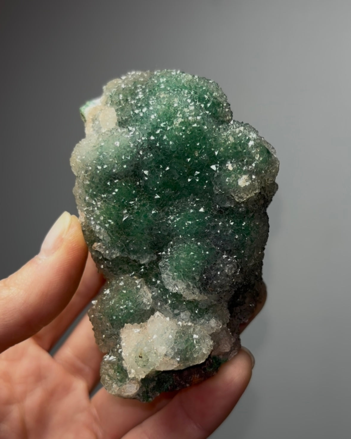 Sparkly Quartz over Green Malachite Origin: Katanga, Congo Size: 98 x 63 x 57 mm Weight: 272 gr Read more