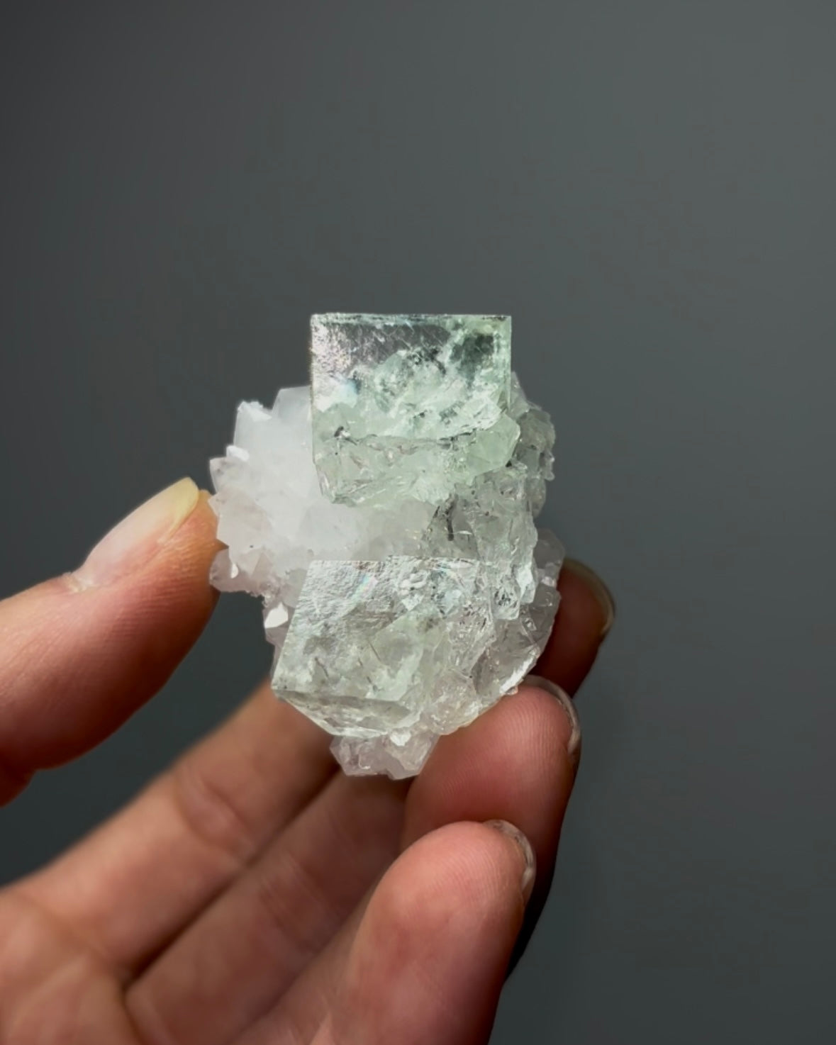 Gemmy Green Fluorite with Quartz Origin:  Hunan, China Size: 47 x 37 x 30 mm Weight: 40 gr Read more