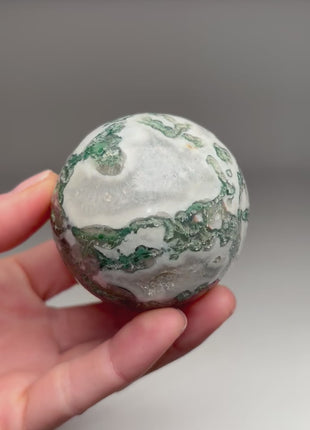 Green Moss Agate with a lovely pattern and druzy openings. Moss Agate is a stabilizing stone strongly connected with nature... Read more
