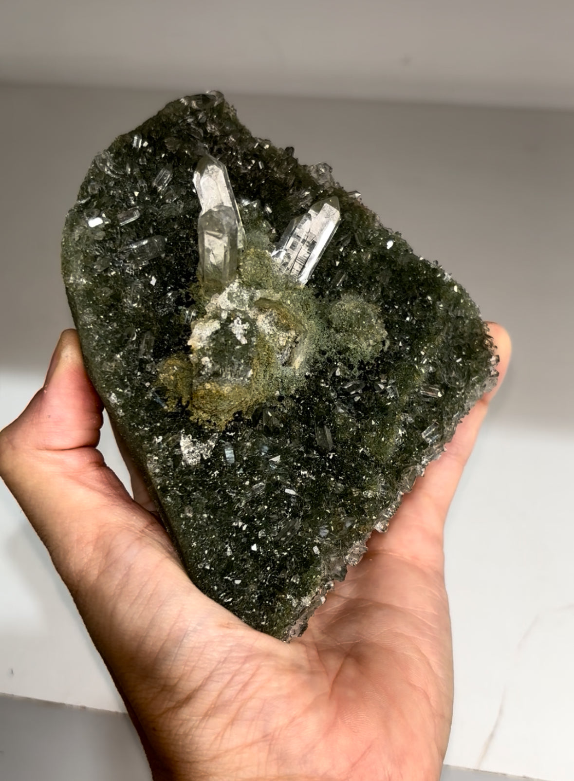 Himalayan Green Chlorite Quartz Origin: Kulu Valley, Himachal Pradesh, Indian Himalayas Size : 150 x 106 x 75 mm Weight:... Read more