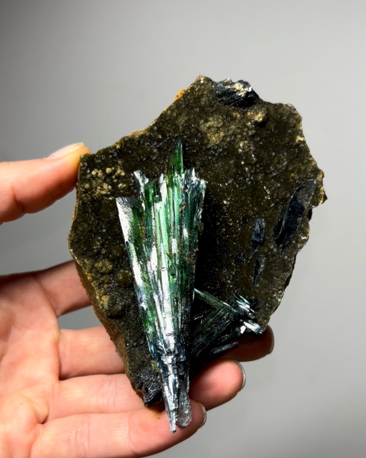 Green Vivianite Spray on Matrix Specimen Origin : Cabeça do Cachorro Claim, São Gabriel da Cachoeira, Amazonas State, Brazil Size: 113... Read more