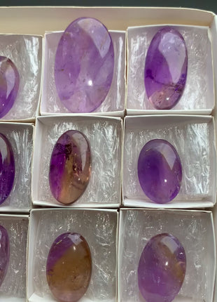 High Grade Ametrine 9 Piece Lot From: Bolivia Size range: 46 - 30 mm Weight: 134 gr Read more