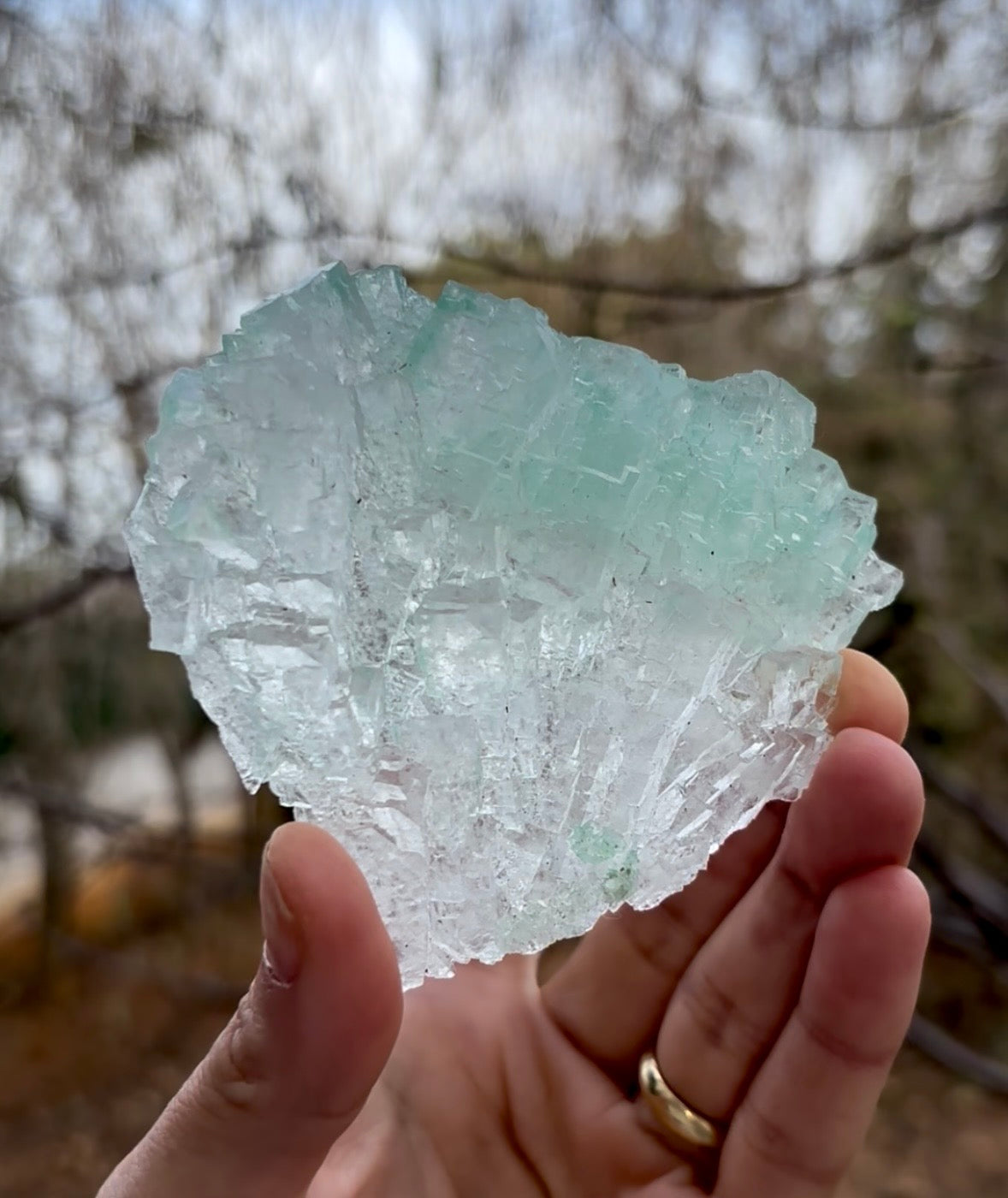 Icy Green Halite Specimen. Great Luster From: Lubin mine, Lower Silesian Voivodeship, Poland Size : 92 x 82 x 23... Read more
