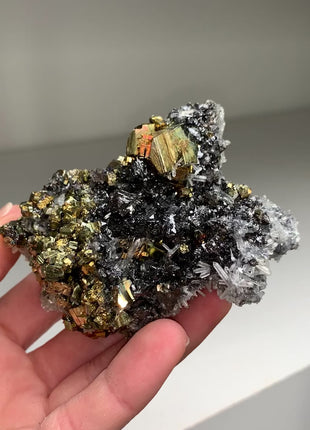 Pyrite, Rainbow Pyrite with Lustrous Sphalerite - Borieva mine, Rhodope Mtns