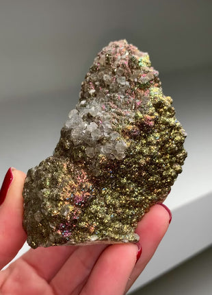 Rainbow Chalcopyrite with Calcite From: Trepca mine, Kosovo Size: 85 mm x 40 mm x 40 mm Weight: 226... Read more