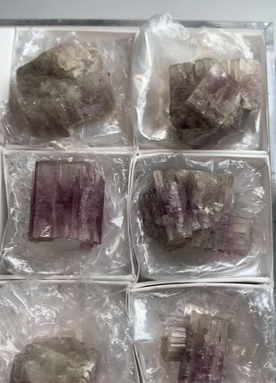 Lilac Hexagonal Aragonite Specimens 6 Piece Lot Origin: Los Molinillos - La Vacariza, Minglanilla, Cuenca, Castile-La Mancha, Spain Size range: 38... Read more