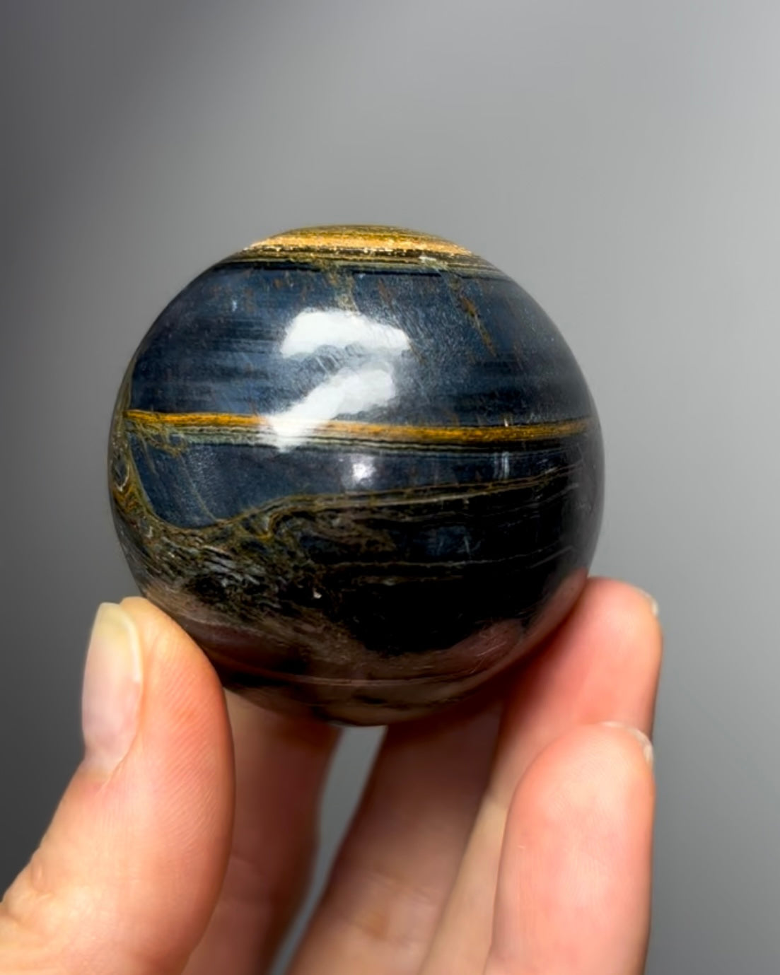 Chatoyant Blue Tiger Eye Origin: Australia Diameter : 50 mm Weight: 159 grams Read more