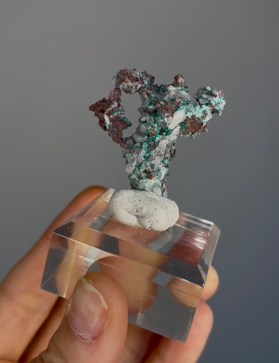 Native Copper with White Calcite and Green Malachite. Great color contrast Origin: Ahouli, Mibladen, Midelt-Morocco Size: 42 x 34 x 27... Read more